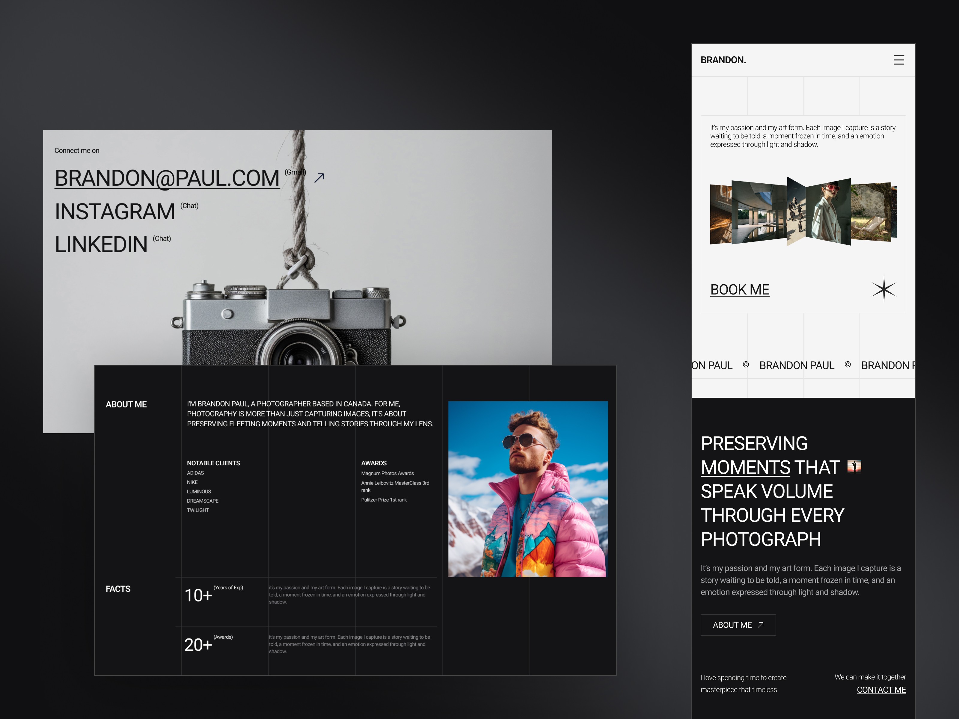 Brandon Paul is a premium Framer template built for photographers who want to showcase their work with clarity, elegance, and strong visual impact. Perfect for photographers and visual storytellers who want to look polished, minimal, and professional from day one.