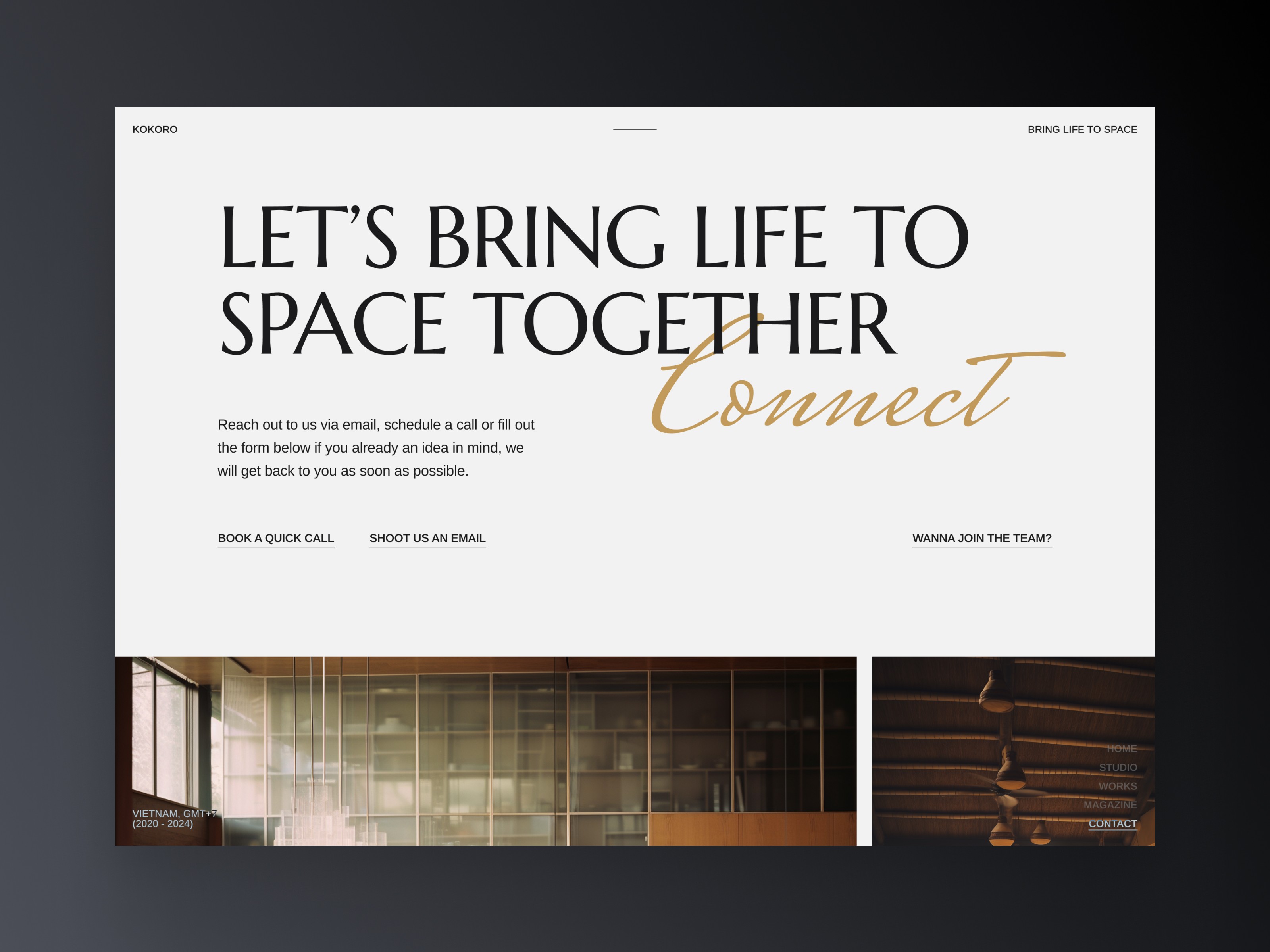 KOKORO is built for architects and artists who want to express their work with calm, refined aesthetics. Perfect for studios and creatives who want to look minimal, thoughtful, and distinctive from day one.